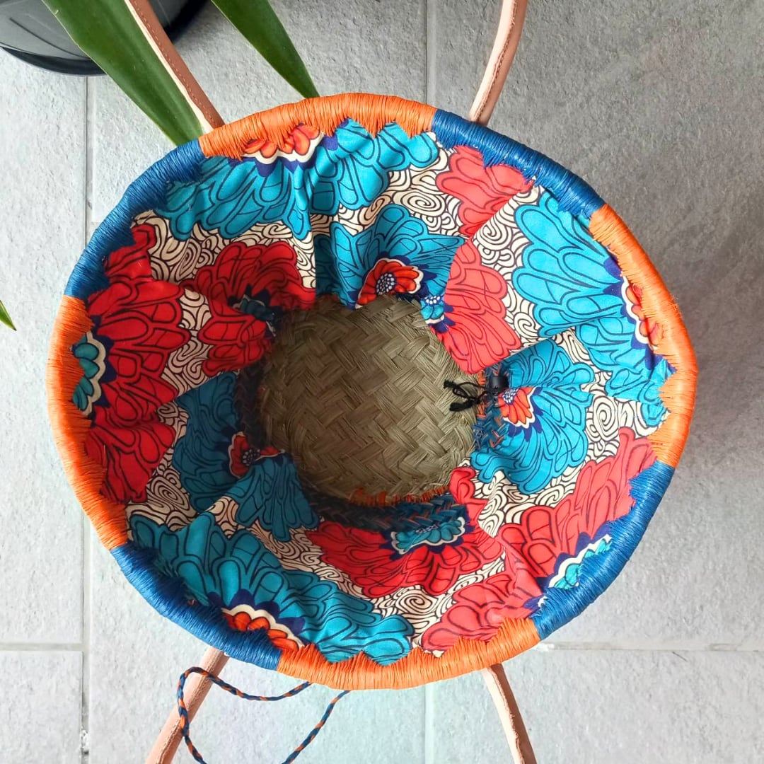 ㊿マルシェカゴバッグ M-丸型-アフリカン-ロングハンドル (52-120)